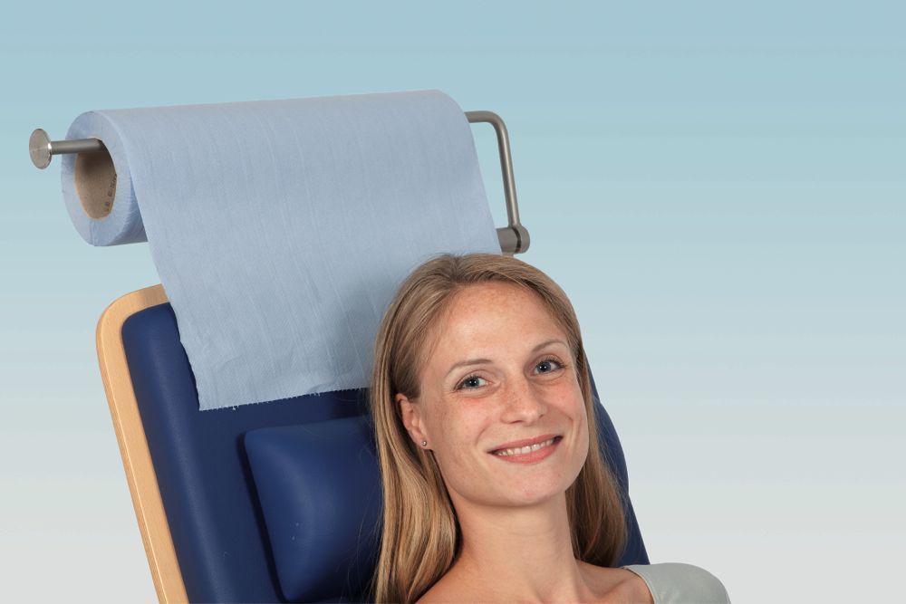 Держатель для бумажных рулонов помогает сохранить чистоту: одно движение и транспортер для пациента CADDY закрыт стерильным бумажным полотном по всей длине!