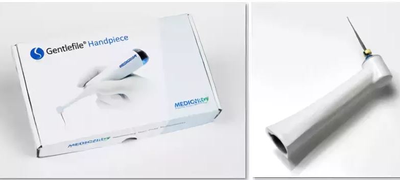 Если корневой канал был препарирован обычными ротационными никель-титановыми файлами, то потом сперва необходимо его очистить красным Gentlefile, который обрабатывает несимметричные пространства благодаря центробежному вращению, а также очищает от дентинных опилок апикальную треть корневого канала.