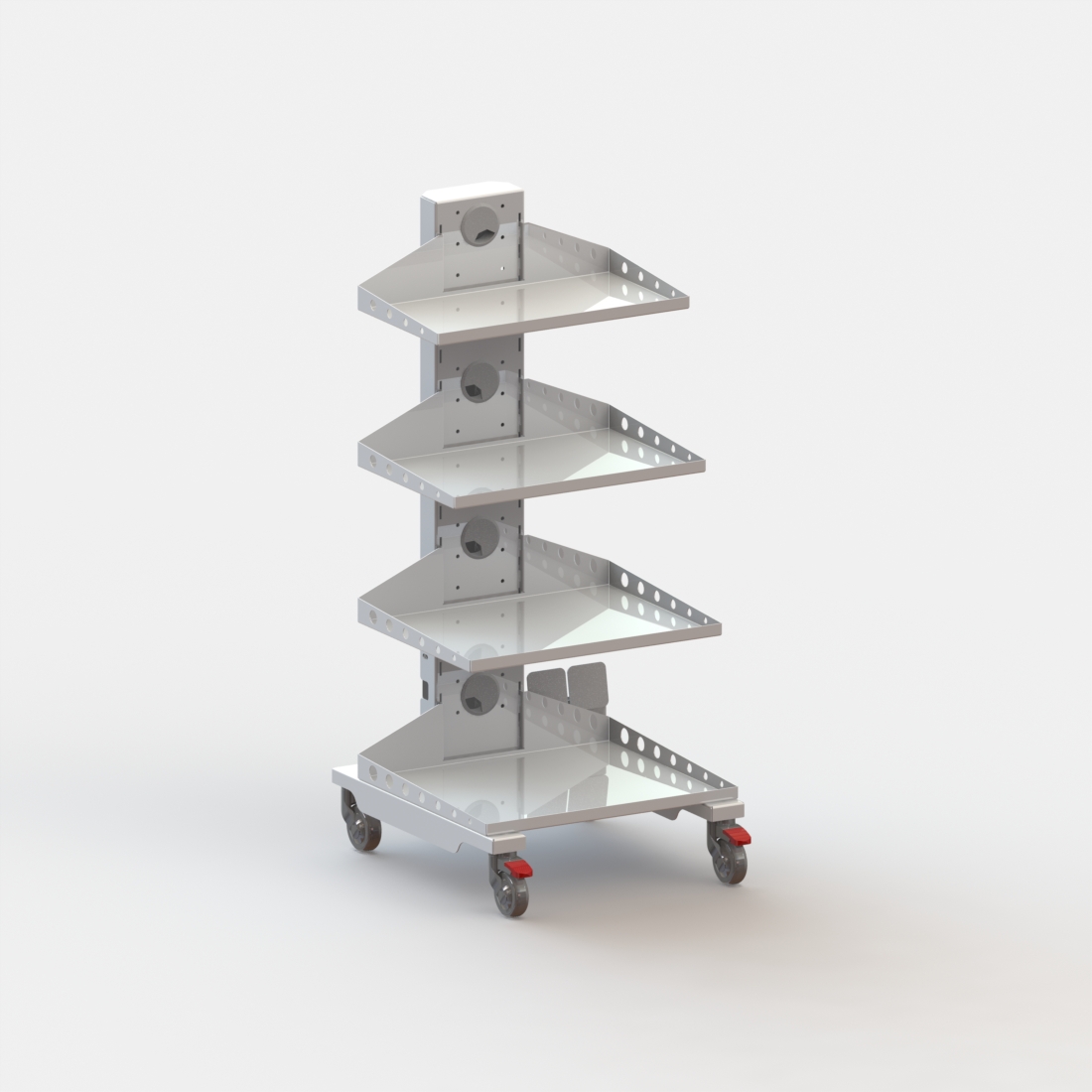 Модель 2: Колёса 75 мм 2 колёса с тормозом, с тремя съёмными полками