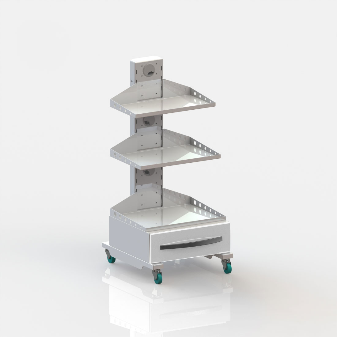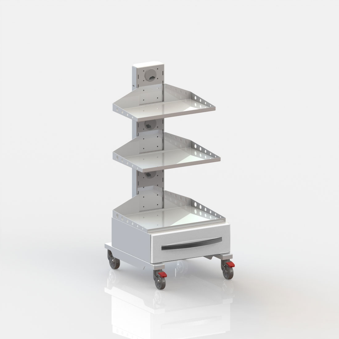 Модель 3: Колёса 50 мм 2 колёса с тормозом, с тремя съёмными полками и выдвижным ящиком