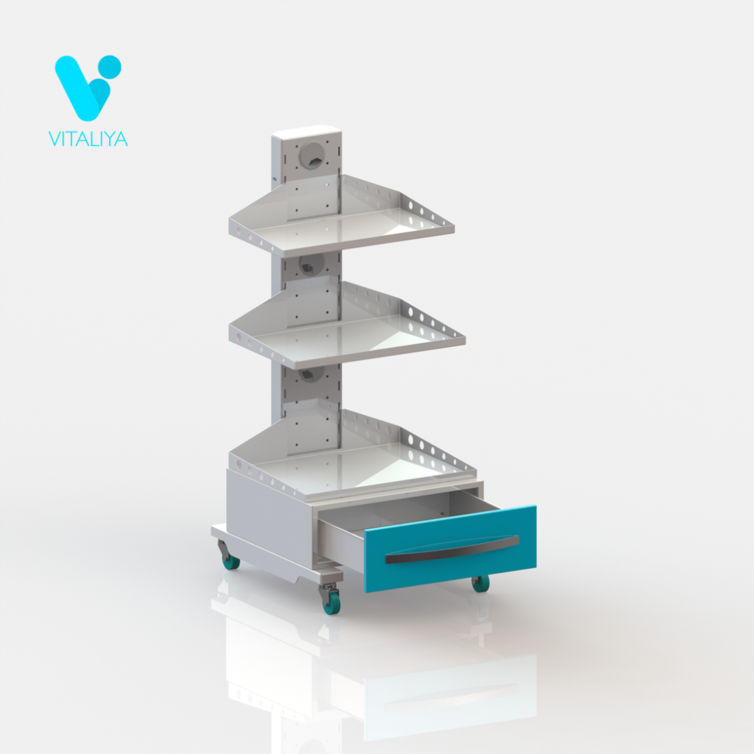 Модель 4: Колёса 75 мм 2 колёса с тормозом, с тремя съёмными полками и выдвижным ящиком