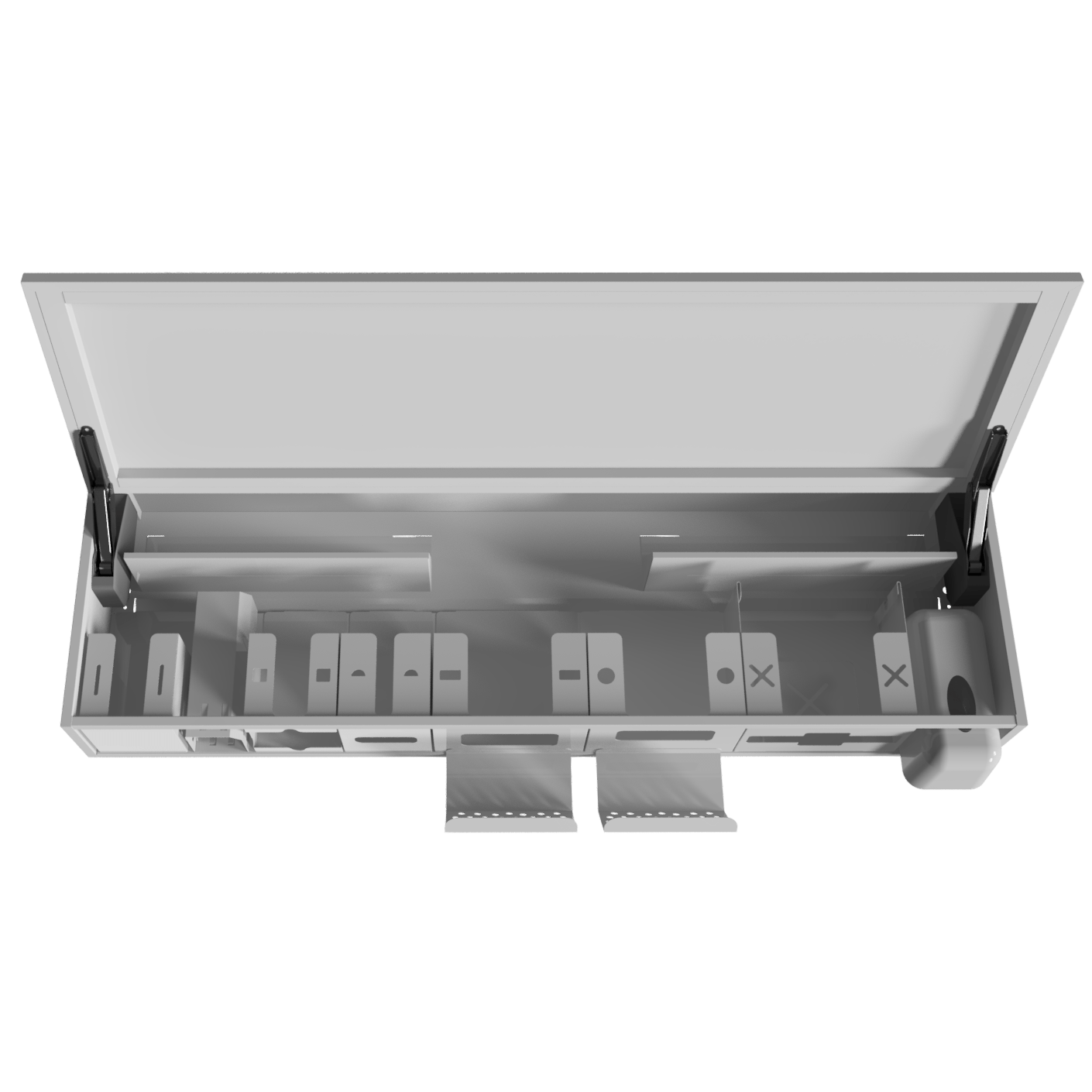 Оснащён восемью съёмными модулями, которые можно заменить, убрать или переставить по вашему усмотрению. Содержимое каждого модуля можно извлечь без открывания дверцы.