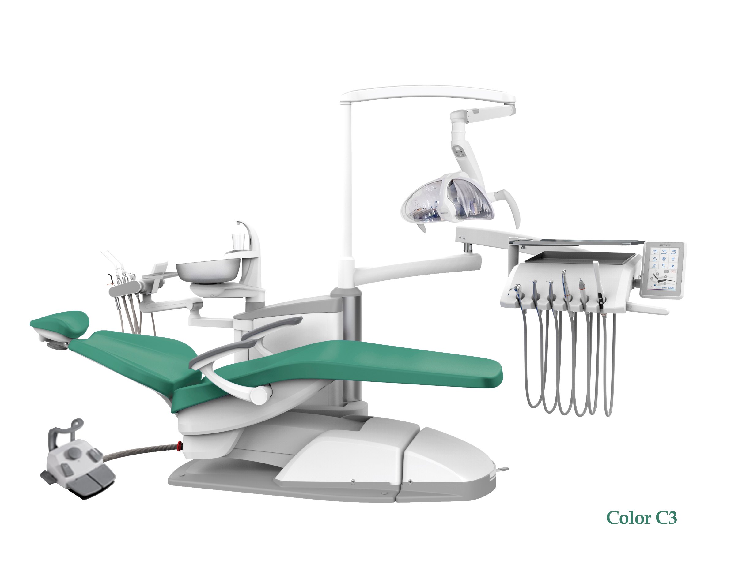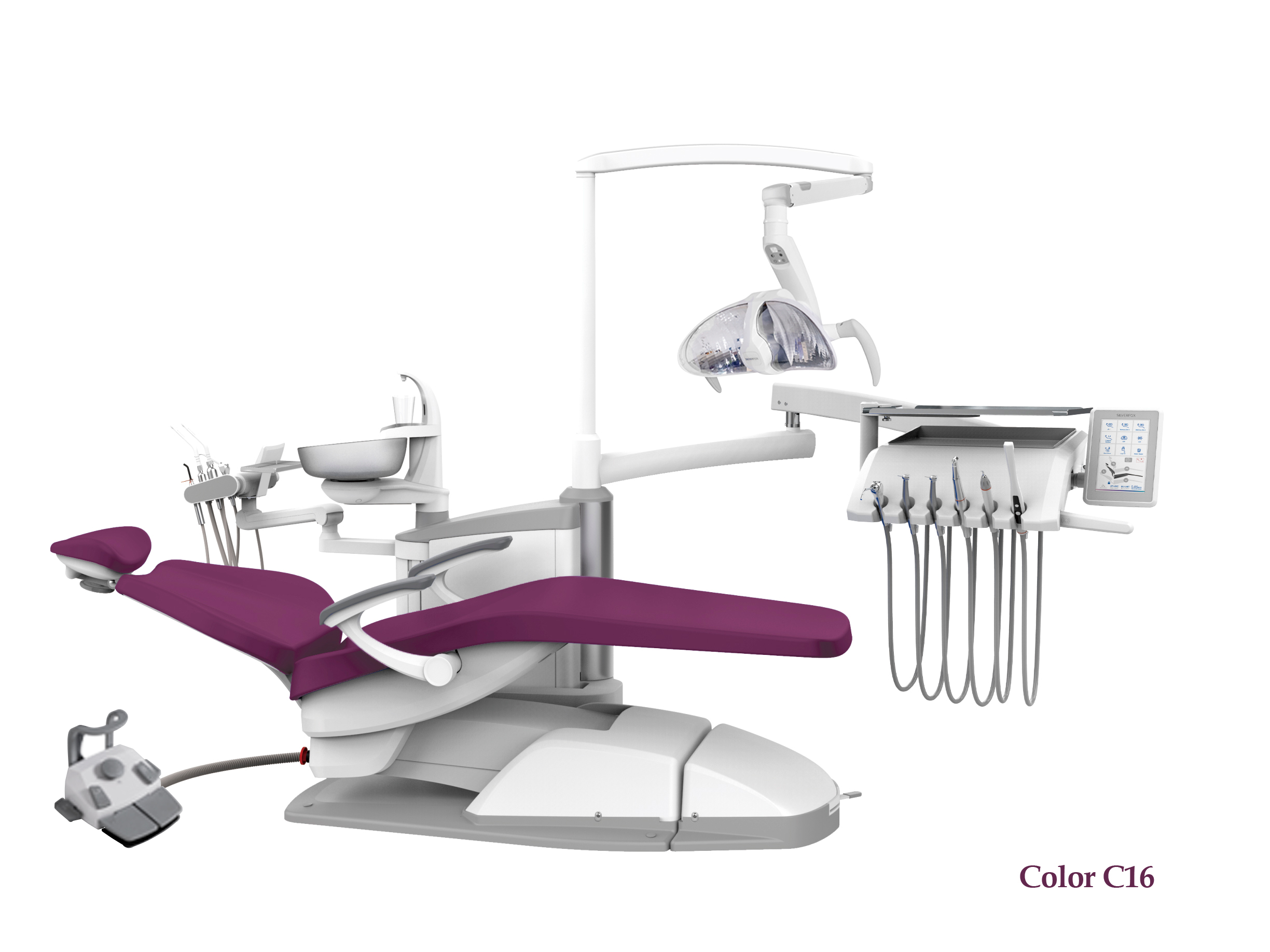 SILVERFOX 8000C-SRS0 – Стоматологическая установка с нижней подачей и с мягкой обивкой