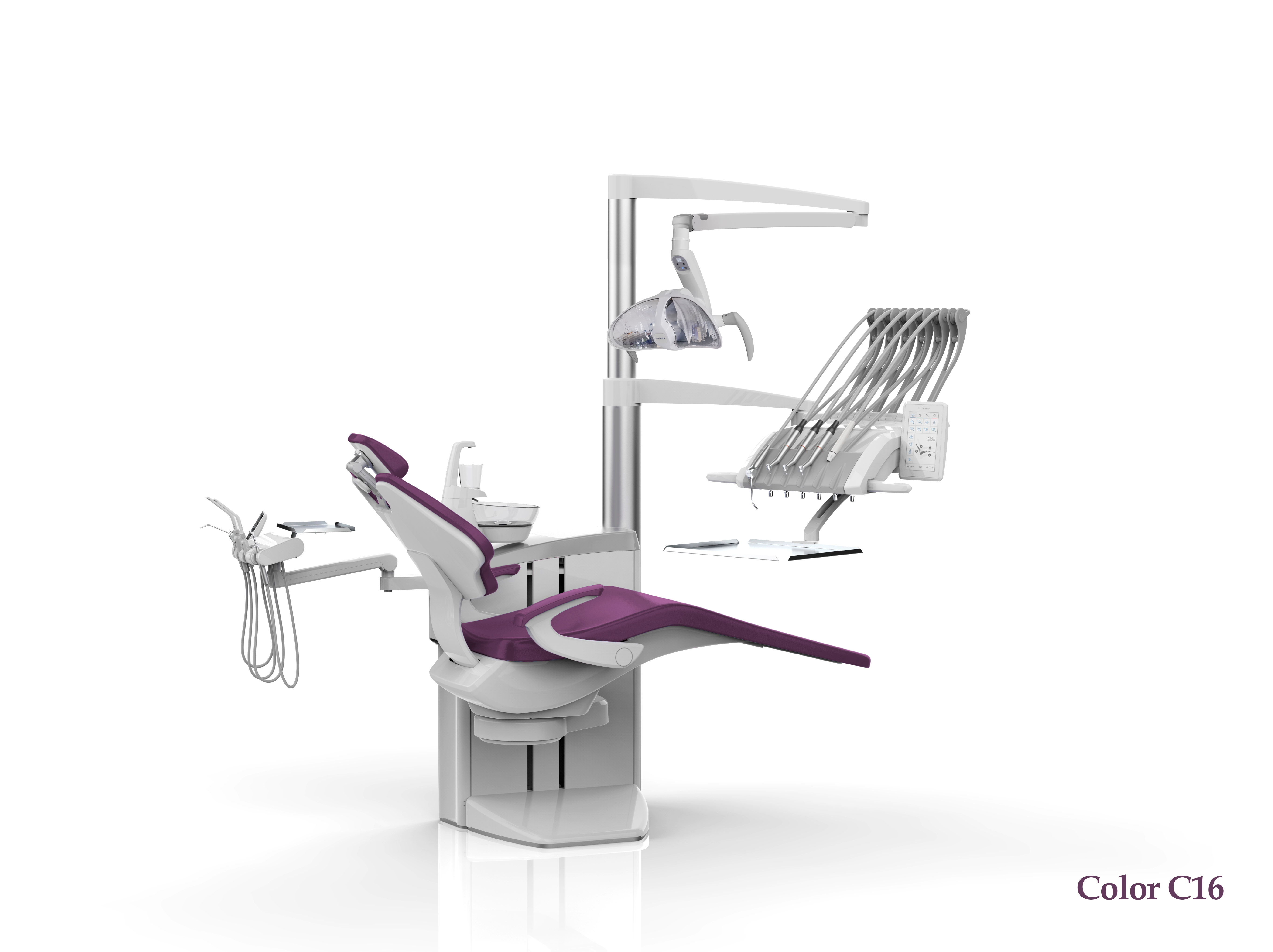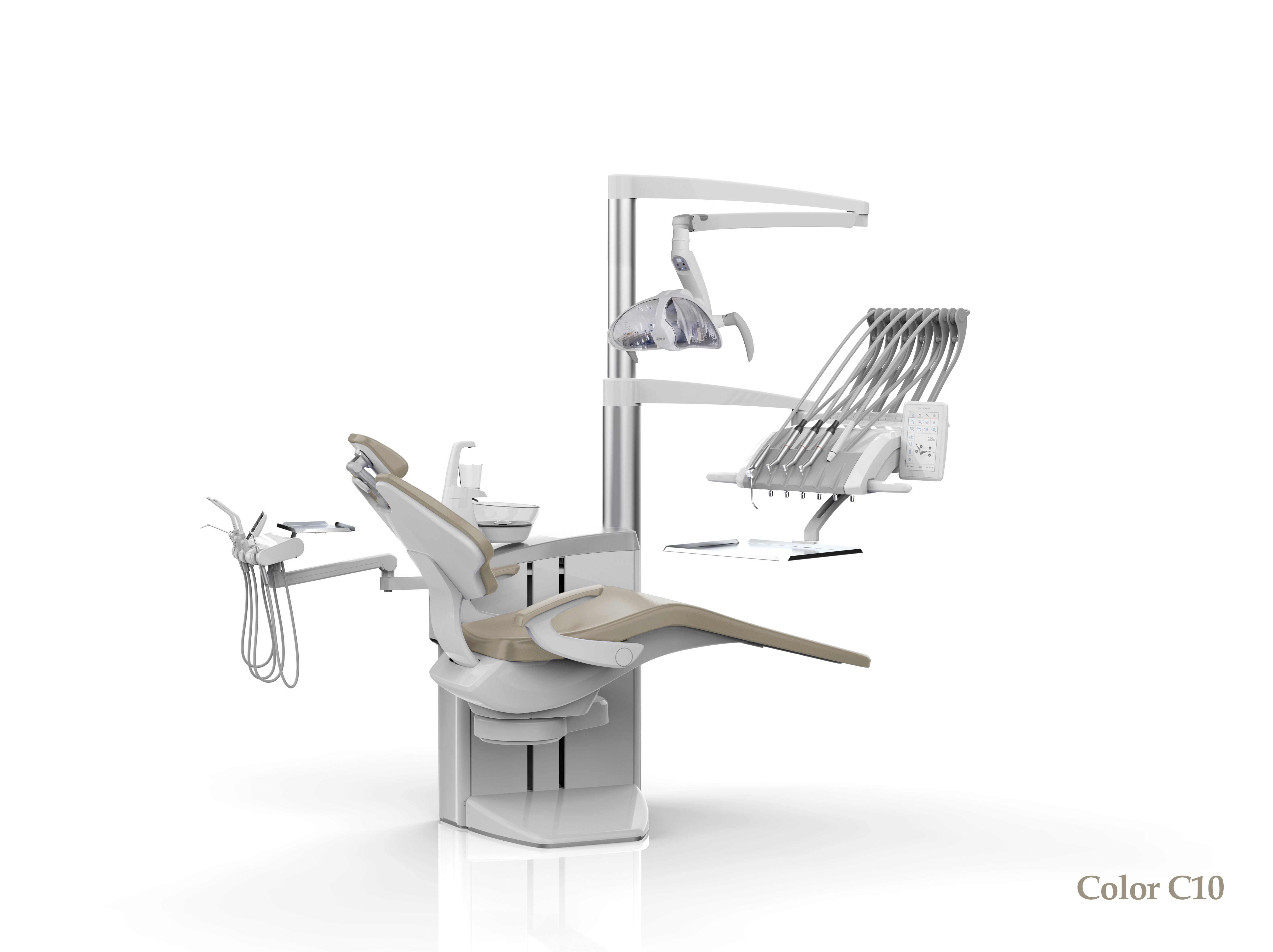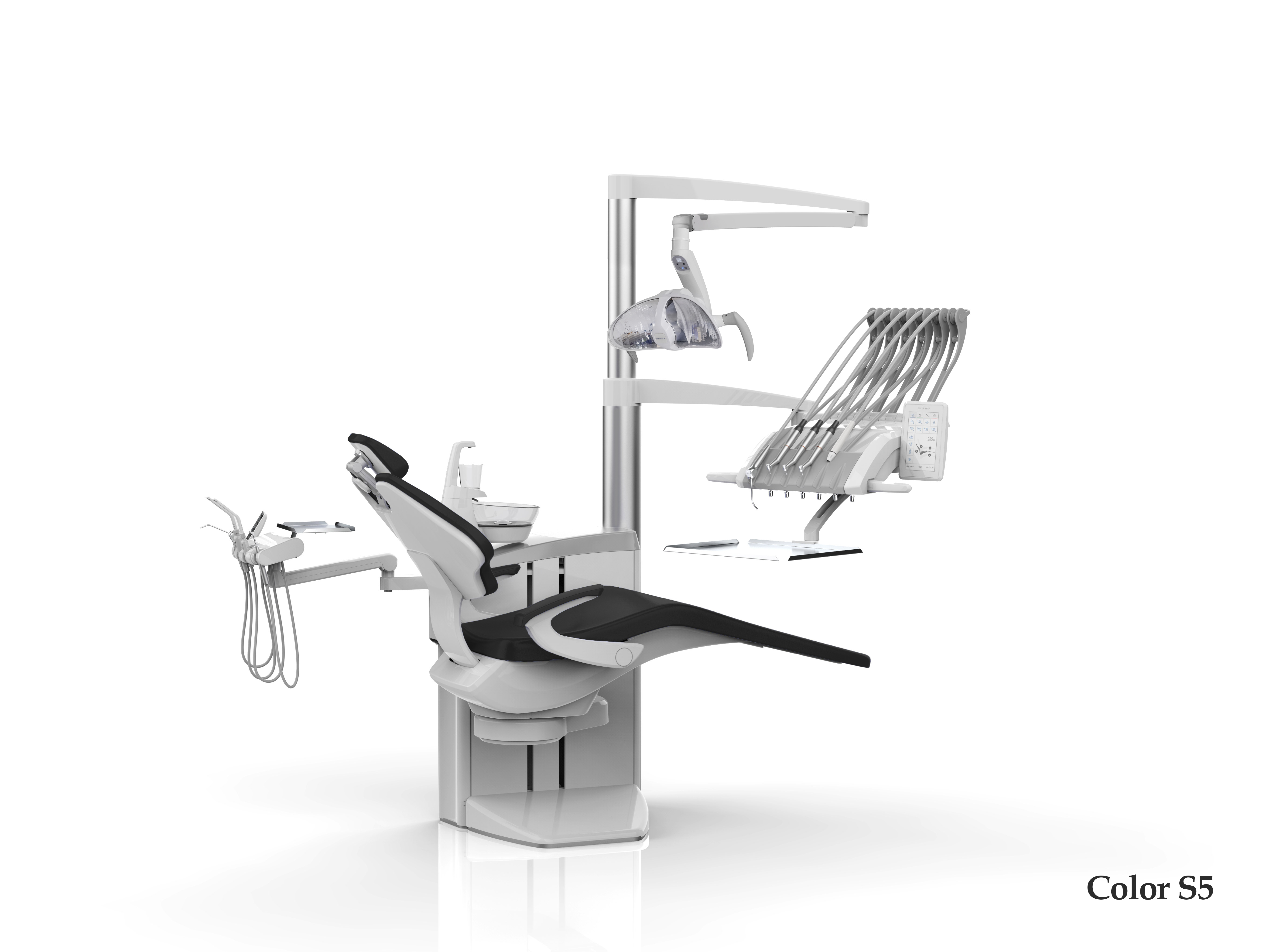 • стоматологическая установка со столиком с верхней подачей инструментов на двойном пантографическом плече