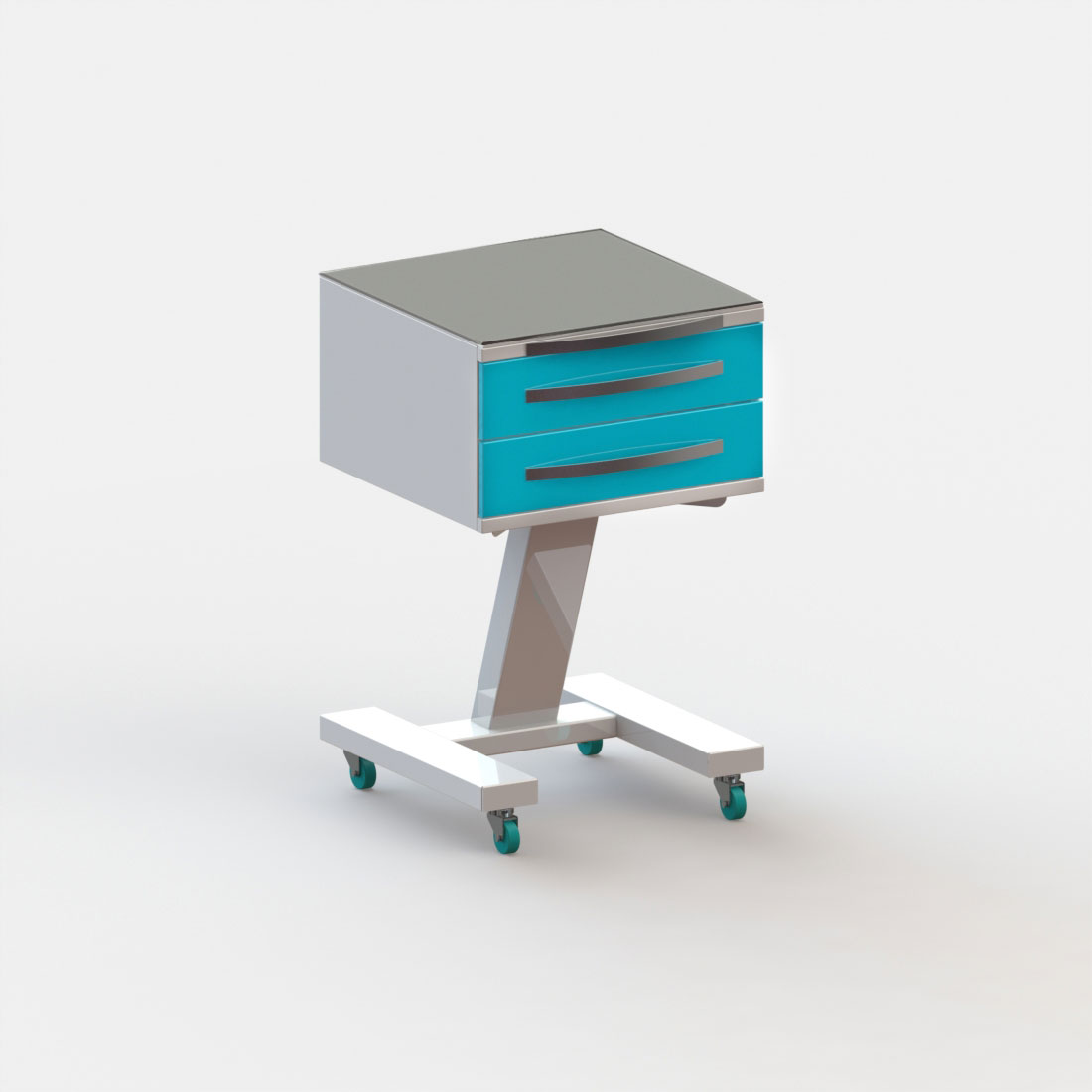 Модель1: Колёса 50 мм, раб. поверхность металл и стекло 5 мм.