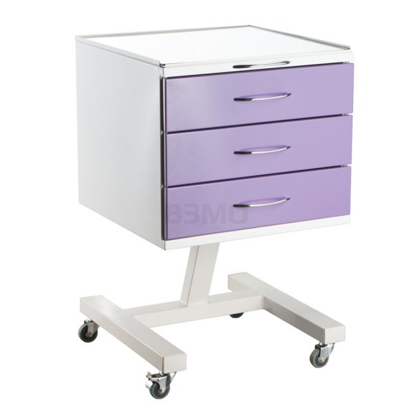 Передвижная тумба имеет четыре ящика на опоре, сверху полка из стекла. По желанию заказчика, так же в столике можно сделать три выдвижных ящика. Опора имеет четыре колеса серой резины Ø50 мм. Столик может использоваться отдельно, а так же отлично сочетаться с набором мебели.