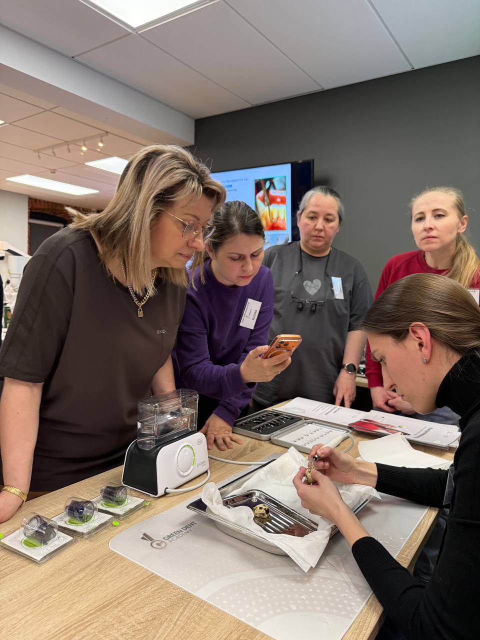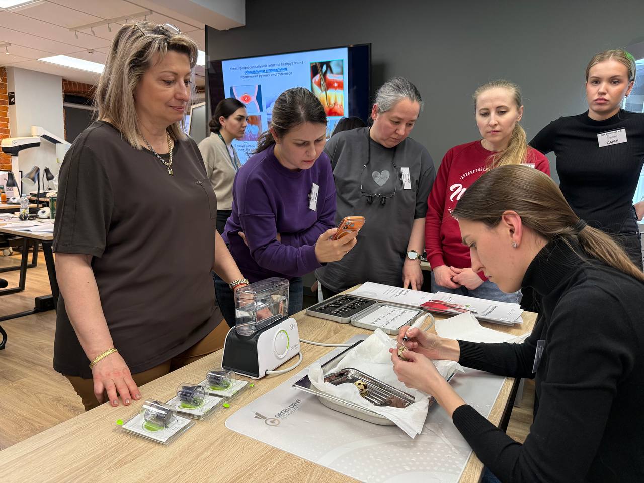 И научились правилам ручной заточки скейлеров и кюрет.